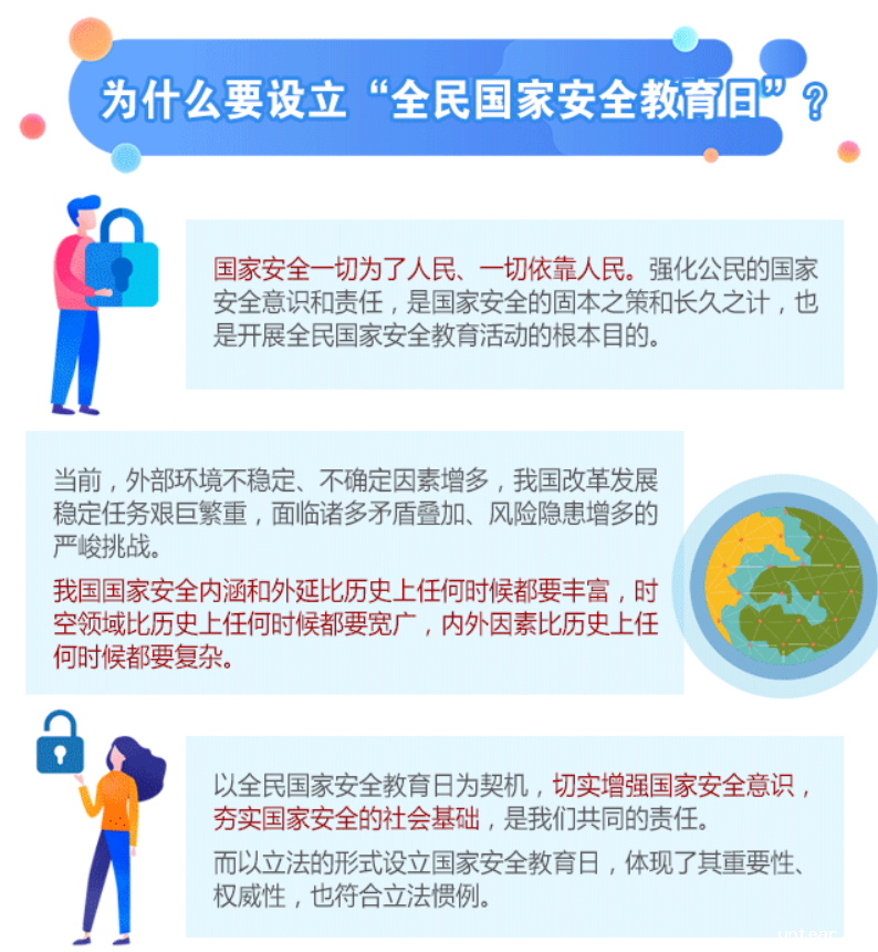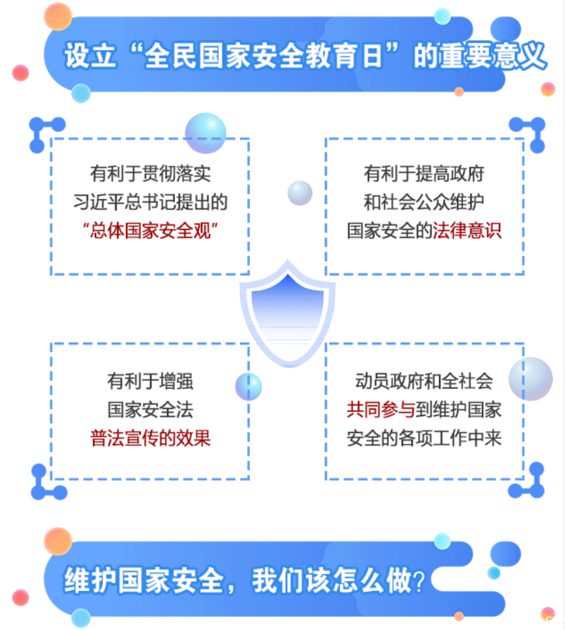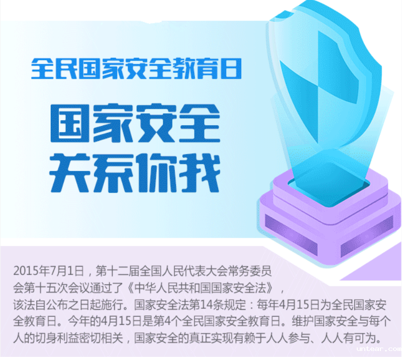 今年的4月15日是第4个全民国家安全教育日。维护国家安全与每个人的切身利益密切相关,国家安全的真正实现有赖于人人参与、人人有可为。
